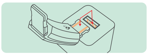USB インターフェースの金属接点を充電器の金属接点に合わせて挿入します。