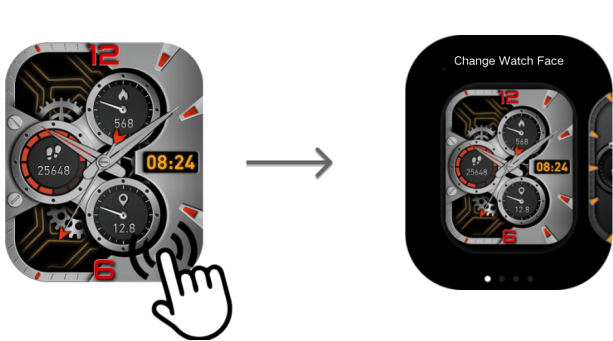 本スマートウォッチはカラースクリーンを採用しており、フルタッチ操作に対応しています。長押し、上スワイプ、下スワイプ、左スワイプ、右スワイプの操作が可能です。