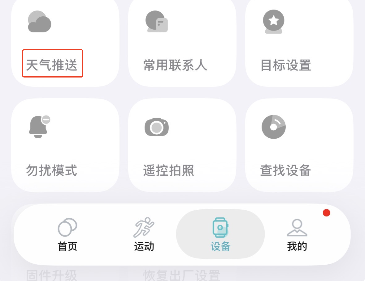 在「設備」選單中點選「天氣推送」。